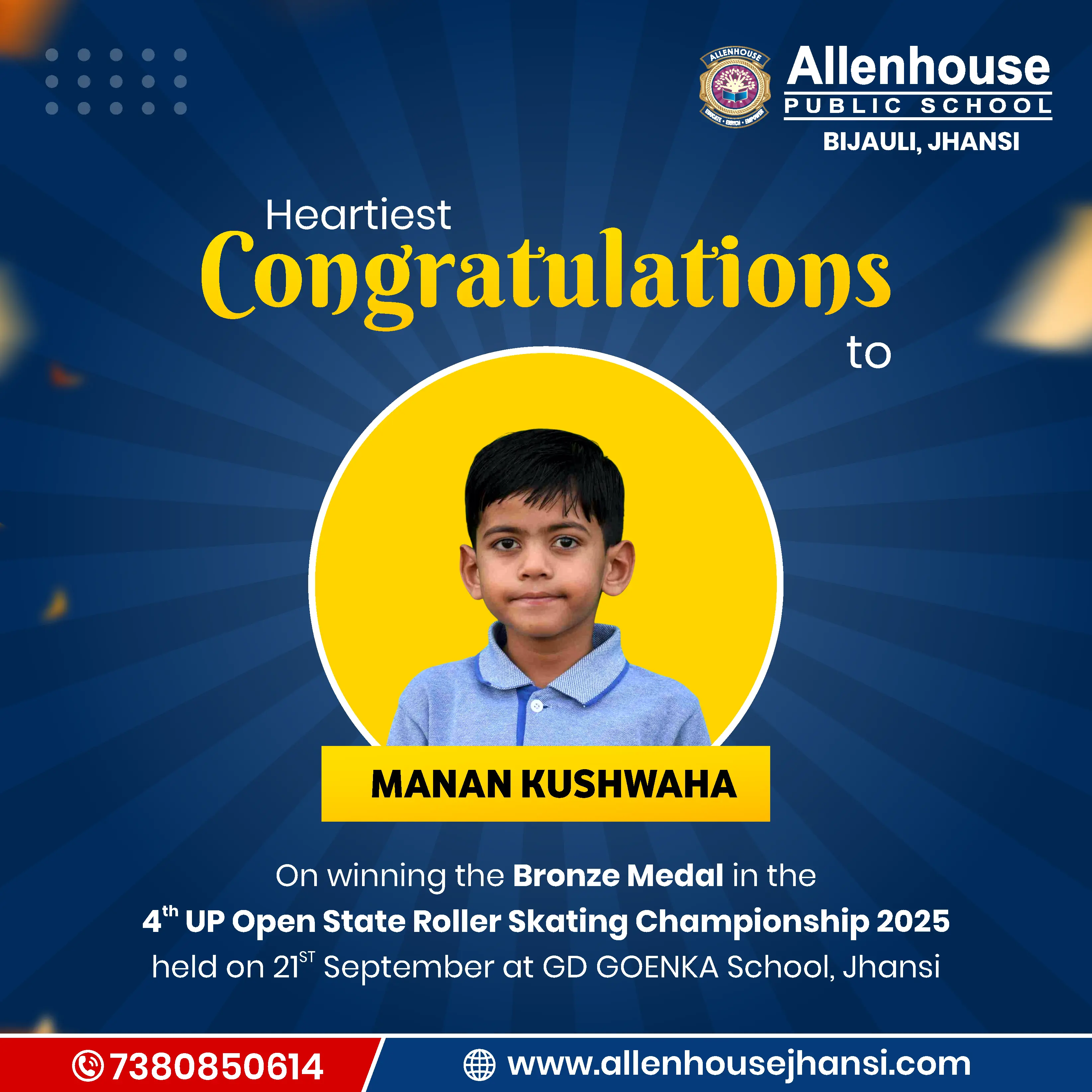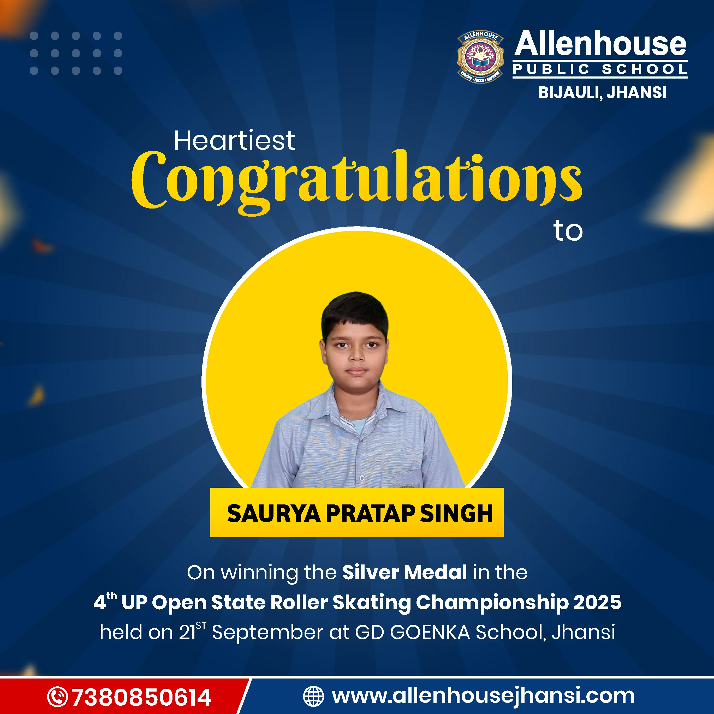 We are proud to share the achievements of our talented students at the 𝟒𝐭𝐡 𝐔𝐏 𝐎𝐩𝐞𝐧 𝐒𝐭𝐚𝐭𝐞 𝐑𝐨𝐥𝐥𝐞𝐫 𝐒𝐤𝐚𝐭𝐢𝐧𝐠 𝐂𝐡𝐚𝐦𝐩𝐢𝐨𝐧𝐬𝐡𝐢𝐩 𝟐𝟎𝟐𝟓 held on 21st September at GD Goenka School, Jhansi