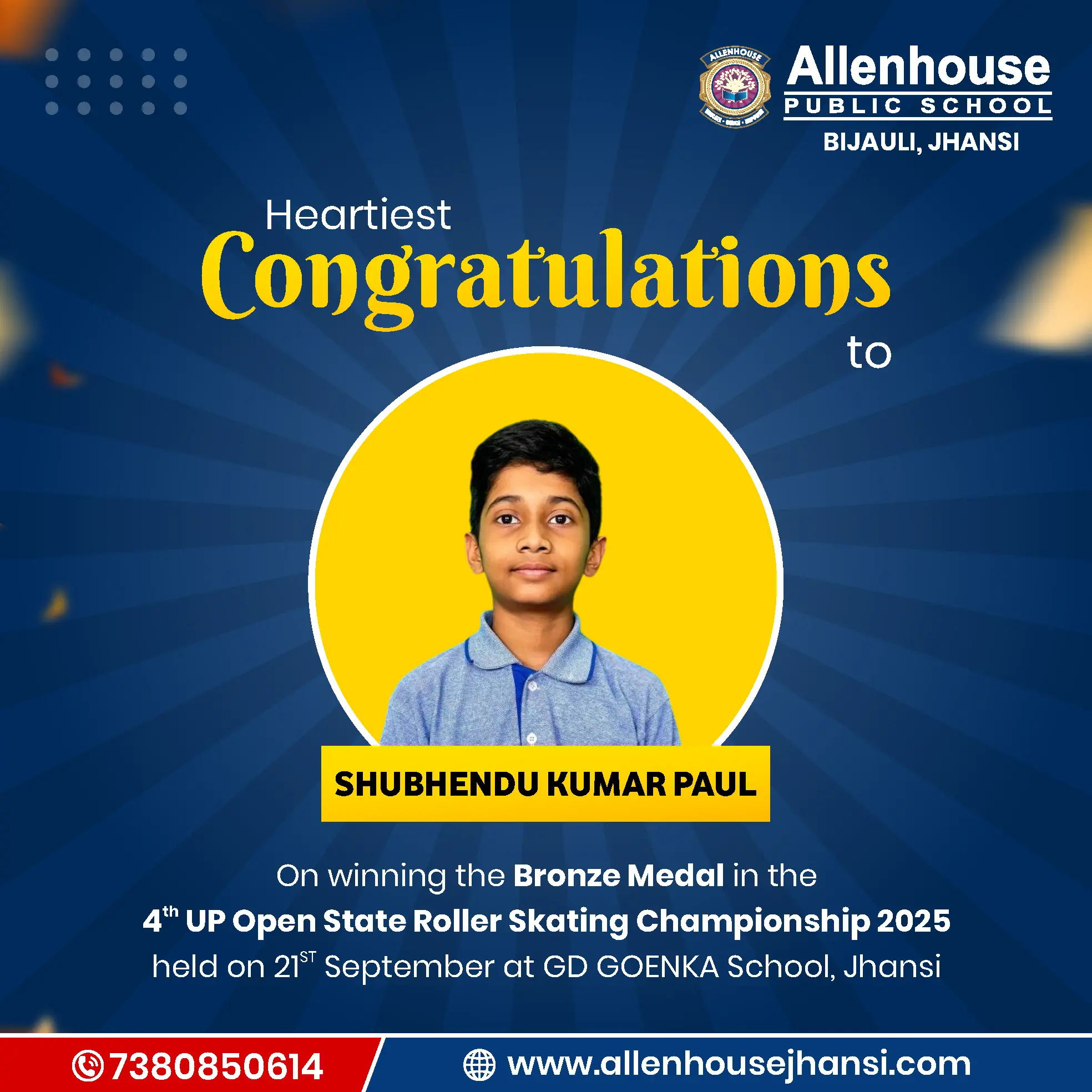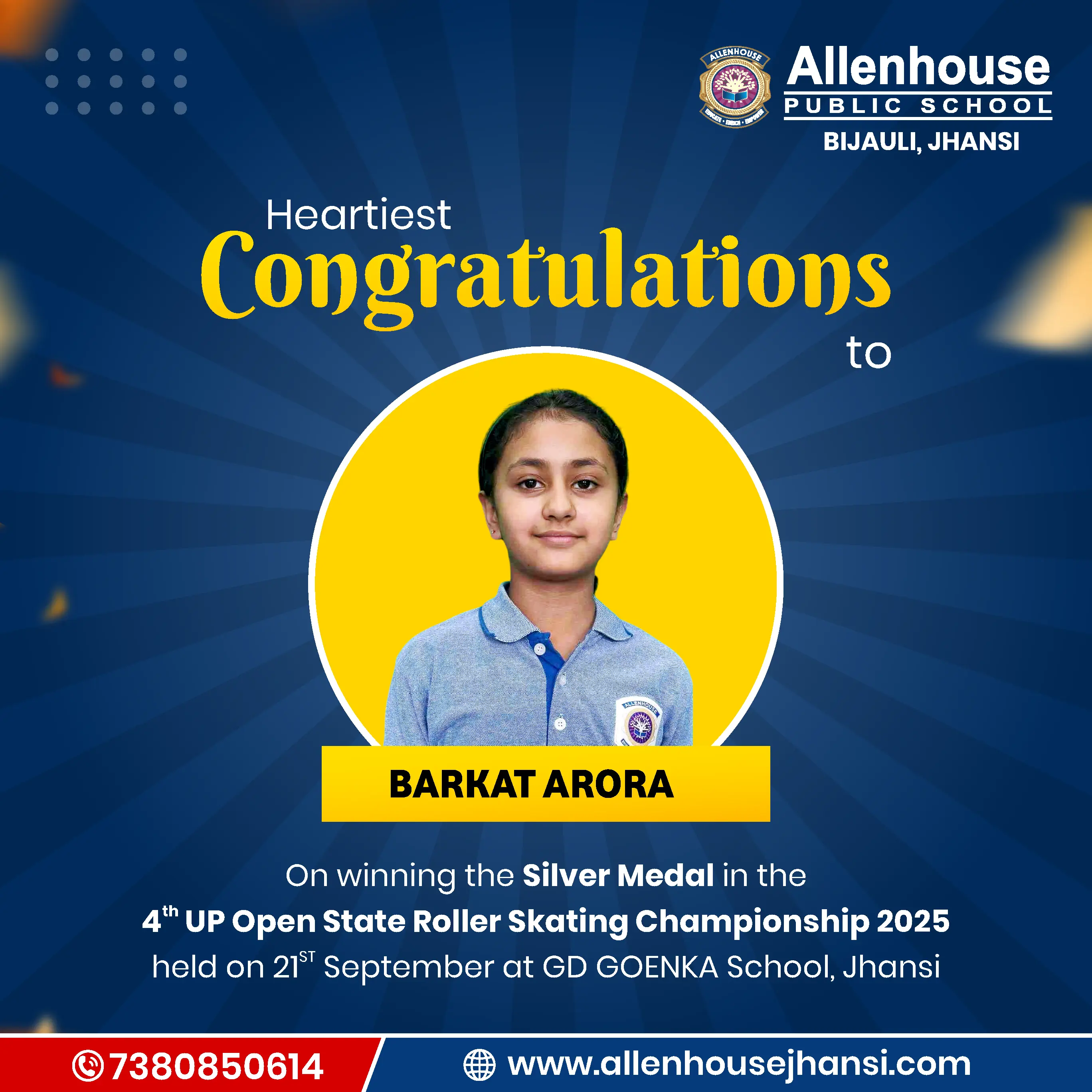 𝐓𝐡𝐞 𝐏𝐫𝐢𝐧𝐜𝐢𝐩𝐚𝐥 𝐚𝐧𝐝 𝐇𝐞𝐚𝐝𝐦𝐢𝐬𝐭𝐫𝐞𝐬𝐬 𝐨𝐟 𝐀𝐥𝐥𝐞𝐧𝐡𝐨𝐮𝐬𝐞 𝐏𝐮𝐛𝐥𝐢𝐜 𝐒𝐜𝐡𝐨𝐨𝐥, 𝐉𝐡𝐚𝐧𝐬𝐢, 𝐞𝐱𝐭𝐞𝐧𝐝 𝐭𝐡𝐞𝐢𝐫 𝐡𝐞𝐚𝐫𝐭𝐢𝐞𝐬𝐭 𝐜𝐨𝐧𝐠𝐫𝐚𝐭𝐮𝐥𝐚𝐭𝐢𝐨𝐧𝐬 𝐚𝐧𝐝 𝐛𝐞𝐬𝐭 𝐰𝐢𝐬𝐡𝐞𝐬 𝐭𝐨 𝐚𝐥𝐥 𝐭𝐡𝐞 𝐰𝐢𝐧𝐧𝐞𝐫𝐬 𝐟𝐨𝐫 𝐭𝐡𝐞𝐢𝐫 𝐛𝐫𝐢𝐠𝐡𝐭 𝐟𝐮𝐭𝐮𝐫𝐞 𝐚𝐧𝐝 𝐮𝐩𝐜𝐨𝐦𝐢𝐧𝐠 𝐞𝐧𝐝𝐞𝐚𝐯𝐨𝐮𝐫𝐬.